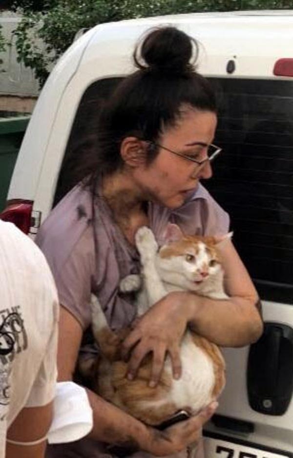 İZMİR'in Balçova ilçesinde bir apartman dairesinde çıkan yangında alevler arasında mahsur kalan yatalak hasta Emine Yılmaz (85) ve bir kedi, itfaiye ekipleri tarafından kurtarıldı.