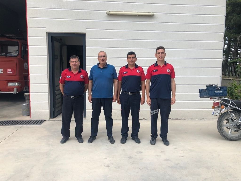Çameli Belediye Başkanı Cengiz Arslan'ın bayram ziyaretinde bulunduğu itfaiyeciler, yangın ihbarı gelince ziyareti yarıda bırakı yardıma koştu.