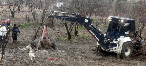 Bir diğer kurtarma operasyonu da Demirci ilçesinde yapıldı. Manisa Büyükşehir Belediyesi İtfaiye Dairesi Başkanlığı'na bağlı itfaiye ekipleri, Dr. Mehmet Akarsu Mahallesi'nde doğum yaptığı yerde çamura saplanarak mahsur kalan ineği kurtarıp, sahibine teslim etti. Yoğun çamurda yapılan kurtarma operasyonunda iş makinesinden de yardım alan ekipler, ineği zarar görmeden kurtararak sahibine teslim etti.(DHA)