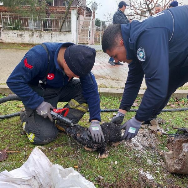 MANİSA Büyükşehir Belediyesi İtfaiye Dairesi Başkanlığı ekipleri, müdahalede bulundukları olayların yanı sıra can dostların da yardımına koşmaya devam ediyor. İtfaiye ekipleri beton elektrik direğinin içine girerek sıkışan 2 köpek yavrusu ile saplandığı çamurda doğum yapan ineği kurtardı.