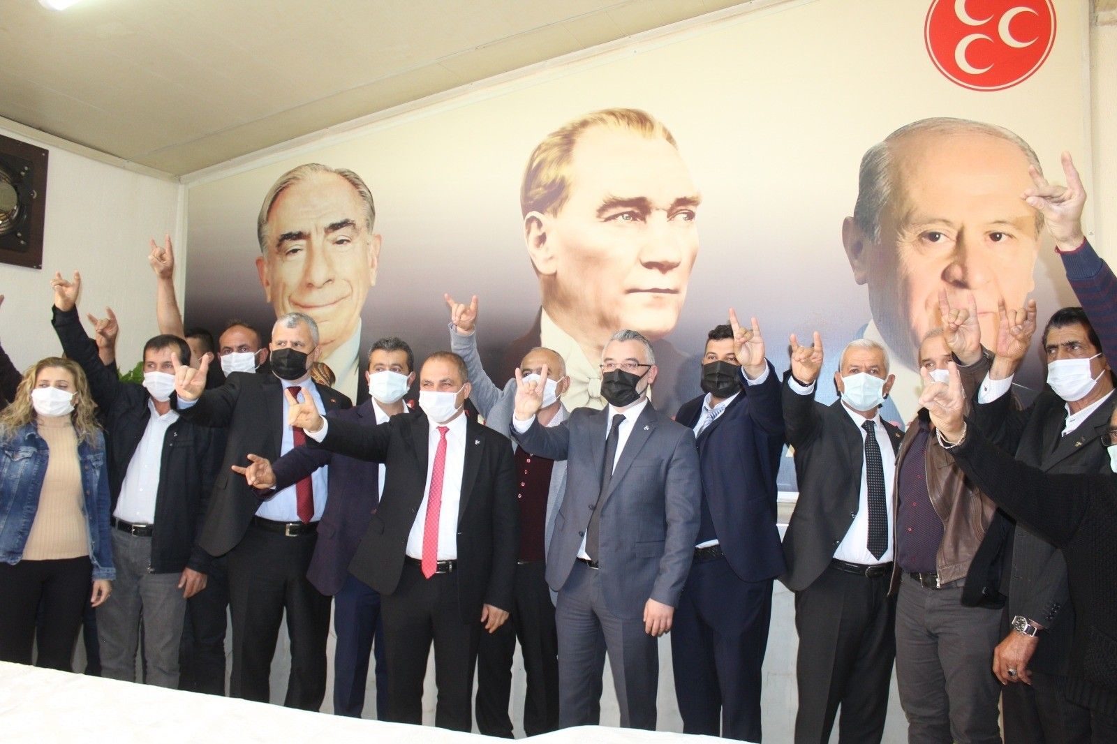 Yapılan konuşmaların ardından İYİ Parti'den istifa ederek MHP saflarına katılan 15 kişinin MHP Üyelik formları doldurularak rozet takma töreni gerçekleştirildi.