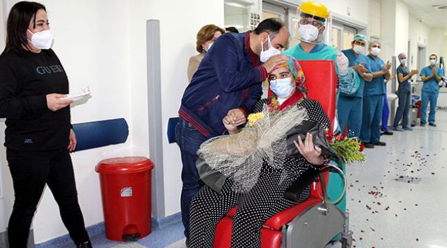 Öte yandan aynı hastanede 20 gün boyunca tedavi gören İbrahim Sarı da yoğun bakım ünitesinden normal servise yine sağlık çalışanlarının alkışları eşliğinde uğurlandı. Doktor Gülseren Elay, "Hastanın düzelmesini yakın takip ve solunum cihazına erken bağlamaya borçluyuz. Bu zorlu hastaları tekrar hayata kazandırmak bizim için büyük bir onur ve gurur. Bu duygunun tarifi yok. Aynı özveriyle çalışmaya devam ederek diğer hastalarımızı da hayata döndürmenin çabası içerisindeyiz" şeklinde konuştu.