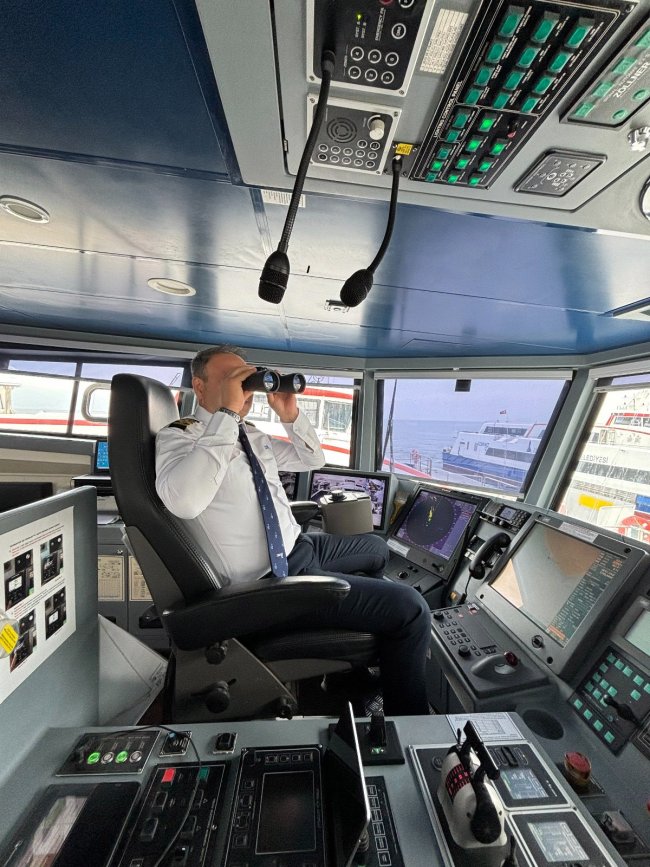 “Olumsuz hava ve deniz koşullarının yanı sıra gemilerimizde meydana gelebilecek anlık arızalar nedeniyle riskli durumlar ortaya çıkabilir. Bunlara karşı hem işletme olarak bizim hem de yolcularımızın tedbirli olması gerekiyor. Özellikle kalkış ve yanaşma manevraları sırasında tehlike ihtimali artıyor. Bu risk, merdivenlerde bekleyen yolcular için daha da katlanıyor. Yolcularımızın, hava yollarında olduğu gibi deniz taşımacılığında da tüm güvenlik ve yolculuk kurallarına uymaları gerekiyor. Bu konuda gemi içinde görsel ve sesli uyarı sistemlerimiz mevcut. Ancak şimdi stajyer arkadaşlarımızı da eğitiyoruz ve gerekirse yolcularla bire bir iletişim kurmalarını sağlıyoruz.”