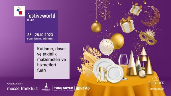 TÜRKİYE ve çevre ülkelerde yapılan ilk kutlama fuarı olma özelliğini taşıyan Festiveworld İzmir, İZFAŞ ve Messe Frankfurt İstanbul ortak organizasyonu ile 25-28 Ekim tarihleri arasında fuarizmir'de düzenleniyor. Bu yıl ilk kez gerçekleştirilecek Festiveworld İzmir, düğünlerden doğum günü partilerine, bayramlardan yılbaşı kutlamalarına kadar tüm özel günler için en son ürün ve trendleri bir arada sunacak.