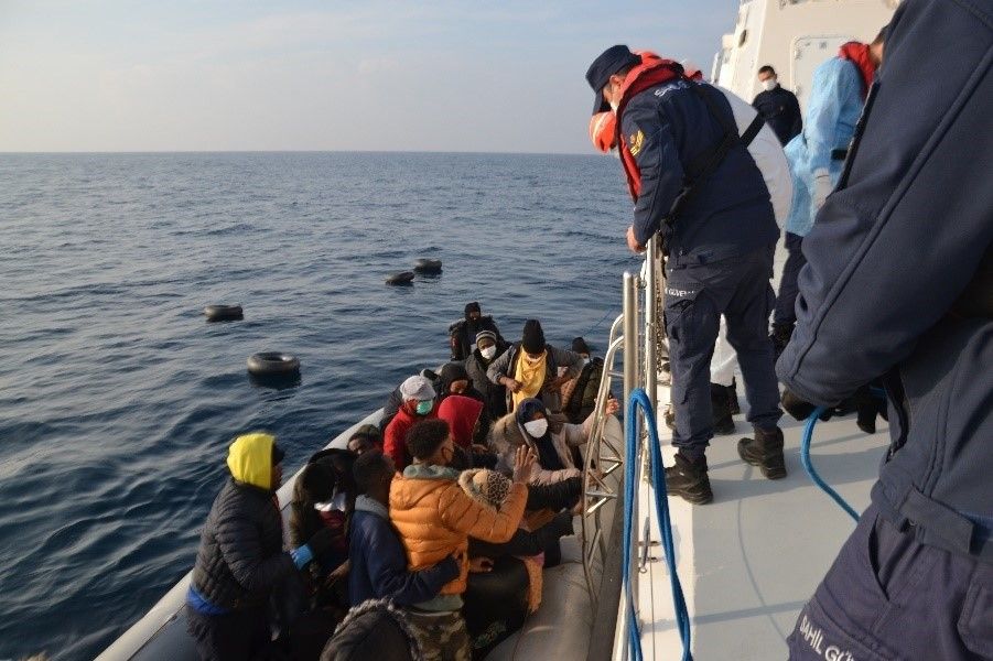 İzmir'in Seferihisar ve Dikili ilçesi açıklarında, Yunanistan unsurlarınca Türk kara sularına geri itilen 59 düzensiz göçmen, Sahil Güvenlik Komutanlığı ekiplerince kurtarıldı.