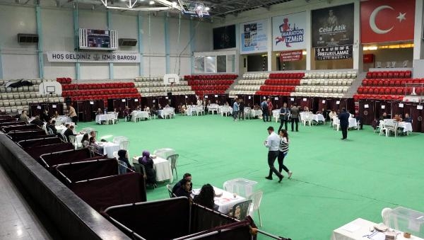 İZMİR Barosu'nun, yeni dönem başkanını ve yönetimini belirleyecek 2022 Yılı Olağan Genel Kurulu'nun ikinci gününde, Celal Atik Spor Salonu'nda sandıklar kuruldu. 5 adayın bulunduğu seçimde, İzmir Barosu'na kayıtlı avukatlar, saat 17.00'a kadar oy kullanabilecek.