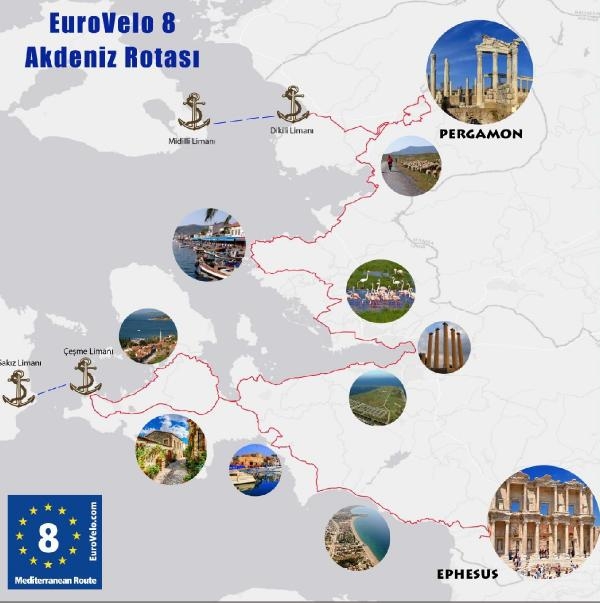 Avrupa Bisiklet Rotası Ağı'na (EuroVelo) Türkiye'den seçilen ilk kent unvanına sahip İzmir'de, bisiklet turizminin geliştirilmesine yönelik çalışmalar devam ediyor. İzmir, 2023 yılının Ekim ayında düzenlenecek EuroVelo Bisiklet Turizmi Konferansı'na ev sahipliği yapmak için ilk değerlendirmenin ardından kısa listeye girmeye hak kazandı.