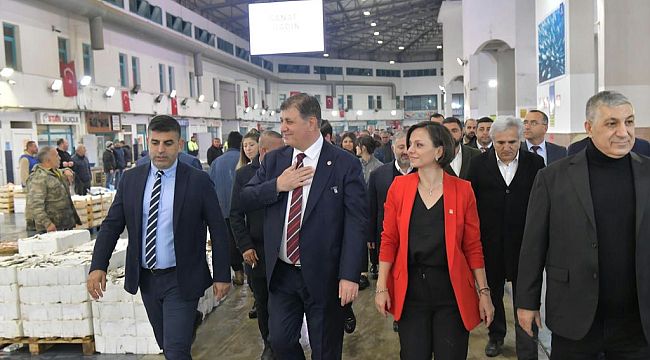 CHP İzmir Büyükşehir Belediye Başkan Adayı Dr. Cemil Tugay, sabahın erken saatlerinde İzmir Büyükşehir Belediyesi'nin Buca'da bulunan Su Ürünleri Hali ile Meyve ve Sebze Halini ziyaret etti. “Esnafın Başkanı Cemil Tugay” sloganlarıyla karşılanan Tugay'a, CHP Buca Belediye Başkan Adayı Görkem Duman, CHP Karabağlar Belediye Başkan Adayı Helil Kınay, CHP il ve ilçe yönetimi de eşlik etti. Esnafla buluşarak sorunlarını dinleyen Tugay, 2 kilogram da barbun balığı satın aldı, Belenbaşı Yörük Türkmen Derneği’nin hediye ettiği poşuyu boynuna taktı.