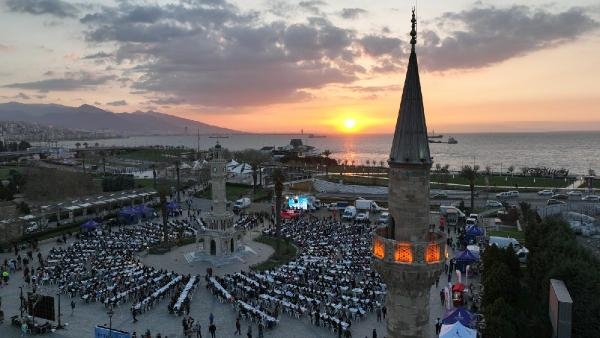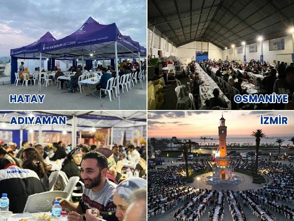 İzmir Büyükşehir Belediyesi Ramazan'ın ilk günü Konak Atatürk Meydanı'nda depremden sonra kente gelen 5 bin depremzedeye iftar verildi. İftara İzmir Büyükşehir Belediye Başkan Vekili Mustafa Özuslu, CHP İzmir Milletvekilleri Kani Beko ve Tacettin Bayır, Kemalpaşa Belediye Başkanı Rıdvan Karakayalı ile eşi Lütfiye Karakayalı, İYİ Parti İzmir İl Başkanı Sinan Bezircioğlu, İzmir Büyükşehir Belediyesi Genel Sekreteri Barış Karcı, İzmir Büyükşehir Belediyesi Genel Sekreter Yardımcısı Ertuğrul Tugay, İzmir Kent Konseyi Başkanı Nilay Kökkılınç bürokratlar, sivil toplum kuruluşlarının başkanları ile temsilcileri ve depremzede vatandaşlar katıldı. Meydanda yapılan iftarla eş zamanlı olarak 10 Biz İzmir dayanışma noktası, 3 mobil aşevi ve Osmaniye, Adıyaman ve Hatay'da toplamda 25 bin kişi İzmir Büyükşehir Belediyesi'nin sofrasında iftarını açtı.
