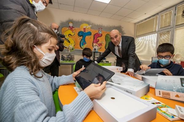 İzmir Büyükşehir Belediyesi, İzmir'in 30 ilçesinde 7-14 yaş arasında sosyal imkanlara erişimi kısıtlı 900 öğrenciye tablet dağıtımına başladı. İlk olarak Kültürpark Çocuk Keşif Atölyeleri Merkezi'ndeki çocuklara yeni yıl hediyesi olarak tabletlerini dağıtan İzmir Büyükşehir Belediye Başkanı Tunç Soyer, "En başından beri çocuklarımıza fırsat eşitliği yaratmak gerektiğinden söz ediyoruz. Her bir çocuğun aynı imkanlardan yararlanması gerek. Belediye olarak istiyoruz ki, İzmir'de büyüyen her çocuğun eşit imkanları olsun, eşit eğitim görsün ve geleceğe birlikte hazırlansınlar. İzmir'in her yerinde 900 tablet dağıtılmaya başlandı. Eğitimde fırsat eşitliğinden yararlanamamış çocuklarımıza bu tabletleri ulaştırıyoruz. Memleketin geleceğini onların aydınlatacağını ve bunu öne çıkarmamız gerektiğini biliyoruz. Bunun için tüm çalışmalarımızı artırarak sürdüreceğiz" dedi.
