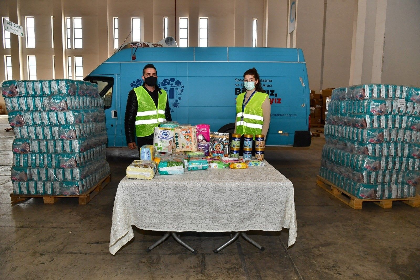 Pandemi sürecinden bu yana gıdadan, süte, giysiden, sıcak yemeğe, tabletten, kitap desteğine kadar ihtiyaç sahiplerinin yanında olan İzmir Büyükşehir Belediyesi, ücretsiz bebek bezi ve mama dağıtımını da sürdürüyor.
