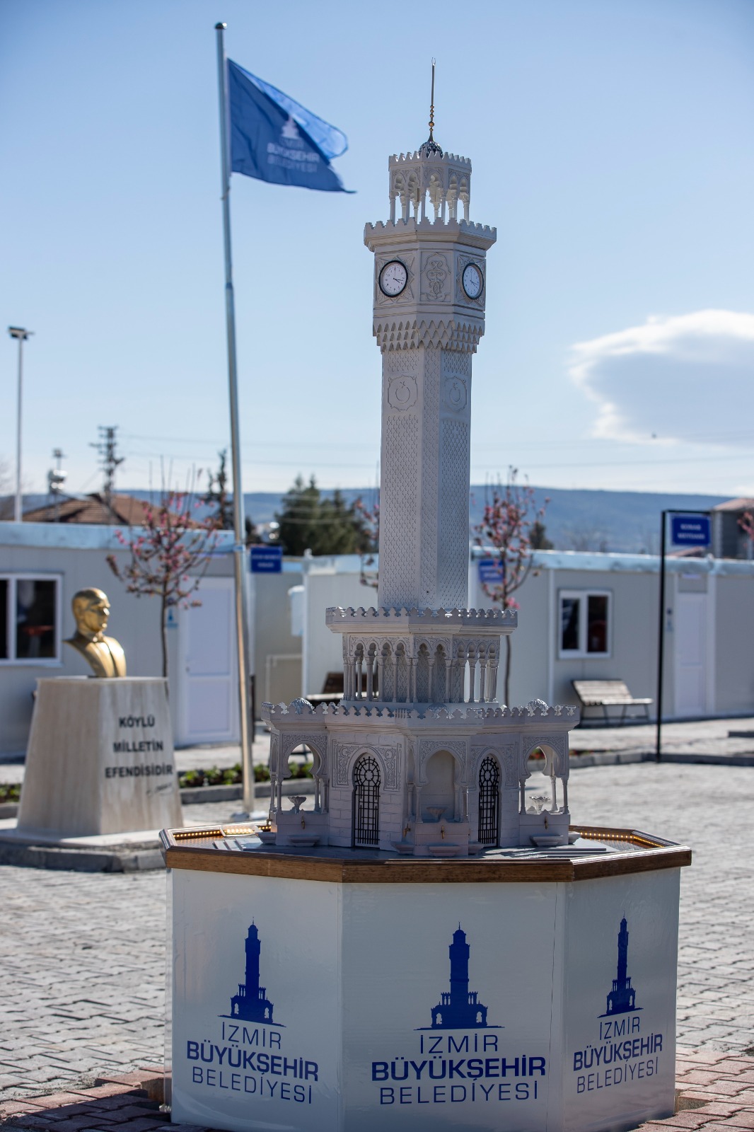 Kahramanmaraş Narlı Beldesi’nde Konak Meydanı, Saat Kulesi, Atatürk büstü ve İzmir sokaklarının yer aldığı konteyner kent depremzedeler için hazır hale getirildi. İzmir'i temsilen 232 konteyner için altyapı oluşturulan alanda 120 konteynerin kurulumu tamamlandı. Deprem bölgesindeki ziyaretlerine Adıyaman’dan başlayan İzmir Büyükşehir Belediye Başkanı Tunç Soyer, geceyi Narlı beldesinde konteyner kentte geçirdi. Sabah saatlerinde ESHOT Genel Müdür Yardımcısı ve Kahramanmaraş Afet Koordinasyon Birimi Koordinatörü Kerim Özer ile incelemelerde bulunan Başkan Soyer, örnek bir konteyner kent ortaya çıktığını söyleyerek tüm büyükşehirler için örnek teşkil edeceğini belirtti.
