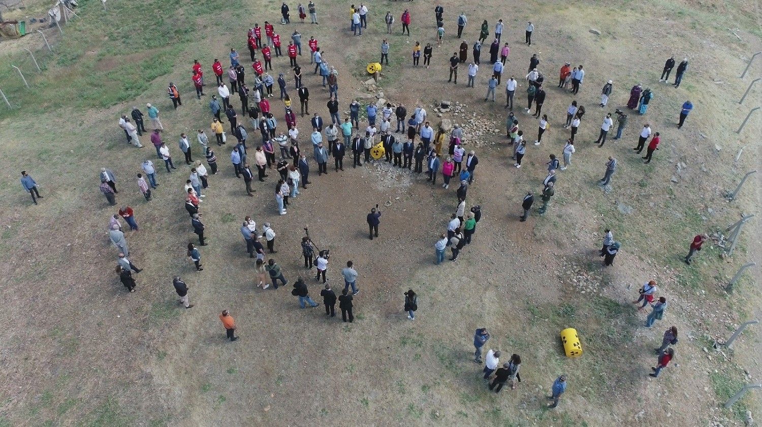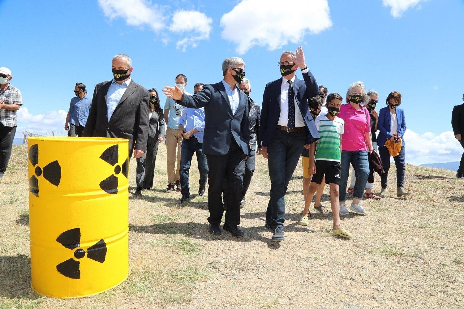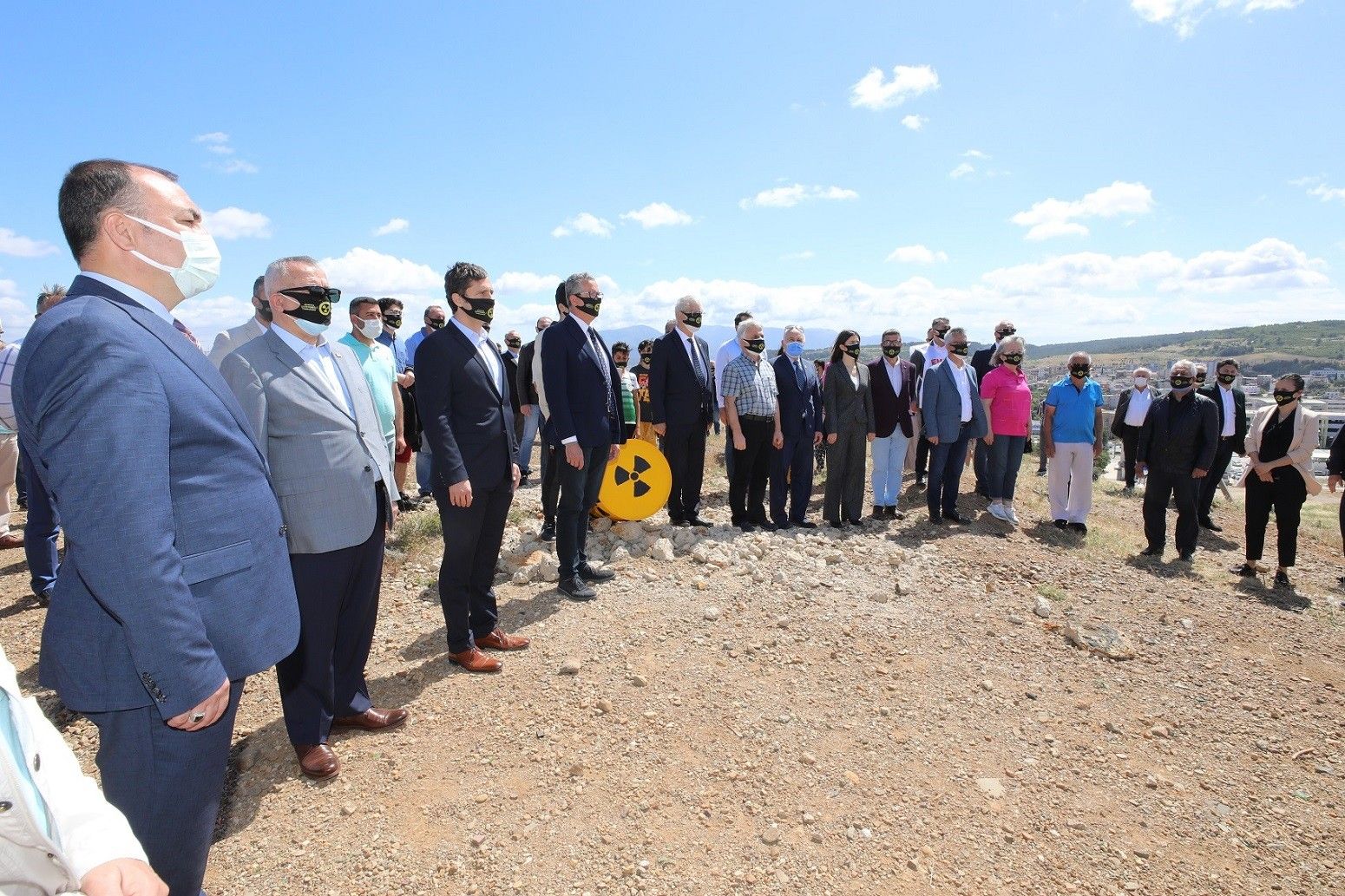 Radyoaktif atıkların bulunduğu alanda düzenlenen eylemde katılımcılar, nükleer tehlikesini belirten alarm sesi eşliğinde 11 dakika boyunca durma eylemi yaptı.