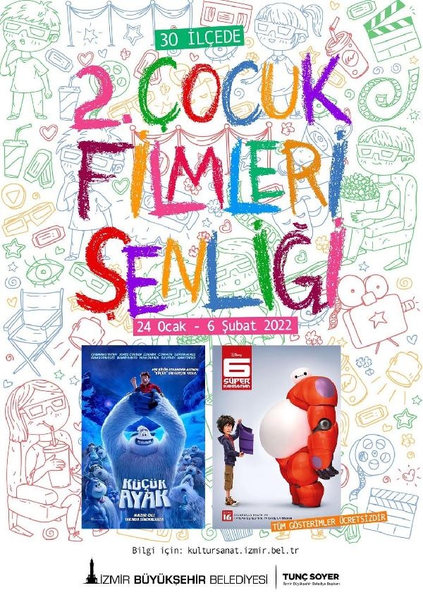 İzmir Büyükşehir Belediye Başkanı Tunç Soyer'in "çocuk dostu kent" vizyonu doğrultusunda başlatılan Çocuk Filmleri Şenliği'nin ikincisi 24 Ocak-6 Şubat 2022 tarihleri arasında yapılacak. Çocukların ara tatilinde karne hediyesi olarak planlanan şenlik kapsamında Kiraz'dan Torbalı'ya Beydağ'dan Bayındır'a İzmir'in 30 ilçesinde film gösterimi yapılacak. Şenlik kapsamında 2018 yapımı Küçük Ayak ve 2014 yapımı 6 Süper Kahraman adlı animasyon filmleri gösterilecek. Filmler 12.00 ve 14.30 saatlerinde iki seans olarak izlenebilecek. İlçe ilçe gösterim tarihleri için "kultursanat.izmir.bel.tr ö ve "www.izmir.art ö adresleri ziyaret edilebilir.