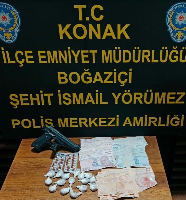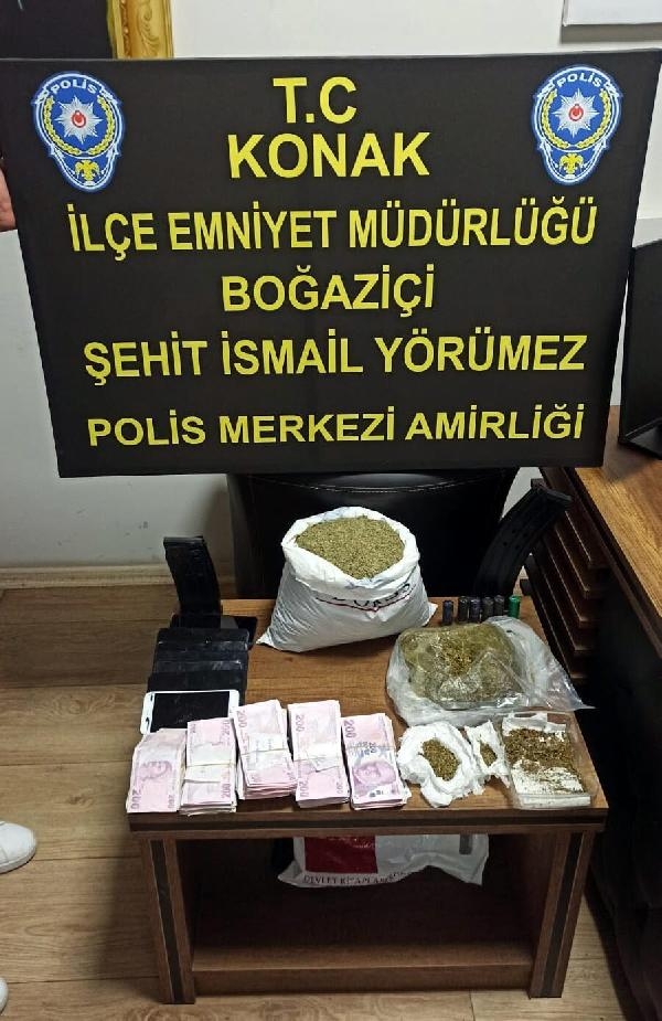 İzmir İl Emniyet Müdürlüğü ekipleri, bugün, uyuşturucu madde bulunduğu belirlenen Konak ilçesindeki bir eve operasyon düzenledi. Çarşı ve mahalle bekçileri de operasyona destek verdi. Evde yapılan aramada 2 kilogram bonzai ile uyuşturucu satışından elde edildiği değerlendirilen 84 bin TL ele geçirildi. Evde bulunan şüpheliler H.K., V.E. ve İ.K., gözaltına alındı. Şüphelilerin polisteki işlemlerinin sürdüğü bildirildi. (DHA)