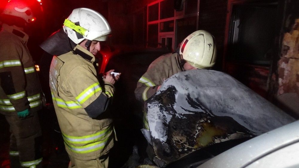 Meydana gelen yangın sebebiyle 2 araç ve 1 iş yerinde hasar oluşurken, polis ekipleri olayla ilgili çevredeki güvenlik kameralarını incelemeye aldı.