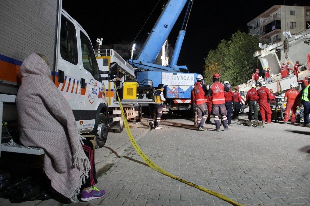 Merkez üssü İzmir Seferihisar olan 6.6 büyüklüğündeki depremin ardından Bayraklı ilçesinde yıkılan 8 katlı Doğanlar Apartmanında arama kurtarma çalışmaları 20 saattir devam ediyor. En son gece 24.00'da 15 yaşındaki Günay Özışık isimli çocuğun çıkarıldığı apartmanın enkazında ekipler sabahın ilk ışıklarına kadar dönüşümlü olarak çalışmaya devam etti. Enkaz altındaki yakınlarını bekleyen vatandaşlar da bütün gece soğuk havada umutla beklemeye devam etti. Vatandaşlar yakınlarının sağ salim çıkmaları için dualar etti.