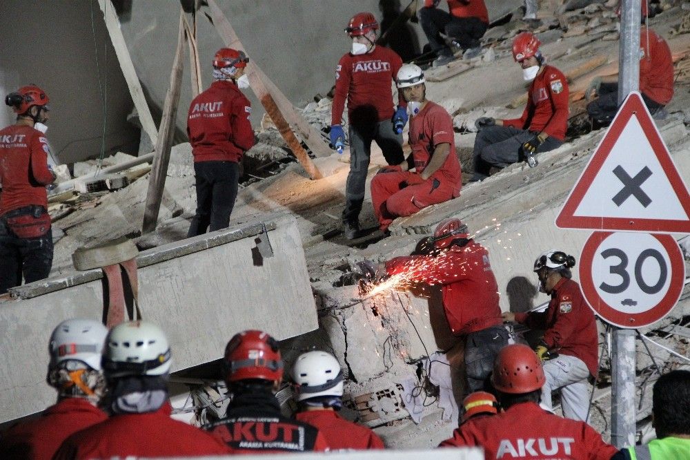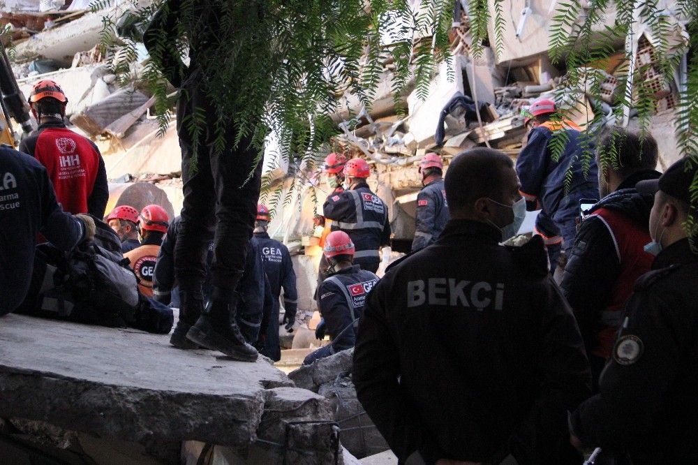 İzmir'de meydana gelen depremin ardından enkaza dönen binalarda arama kurtarma çalışmaları 20 saattir devam ediyor.