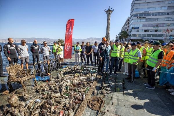 Cumhuriyet Meydanı'nda son bulan temizlik çalışması sonrasında İzmir Büyükşehir Belediyesi İtfaiyesi Arama Kurtarma Dalgıç Ekipleri de Başkan Tunç Soyer'i körfez temizliğinden çıkardıkları malzemelerle karşıladı. Temizlik harekatına denizden destek veren 6 itfaiye eri dalgıç, Cumhuriyet Meydanı önünden yaptıkları dalış sonrasında körfezden sandalye, cep telefonu, cüzdan, kredi kartı gibi gereçler çıkardı. İzmir Büyükşehir Belediyesi İtfaiyesi Arama Kurtarma Dalgıç Ekipleri her ay düzenli olarak kentin farklı güzergahlarında körfez dip temizliği yapıyor.