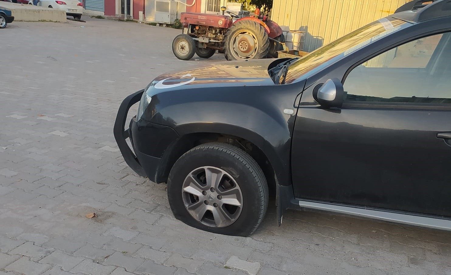 Öte yandan, meydana gelen olay, çevredeki güvenlik kameralarına da yansıdı. Görüntülerde araçların yanına motosiklet ile gelen M.G. ve E.A.'nın ellerindeki kesici aletle lastikleri kestiği ve sonra uzaklaştıkları görüldü.