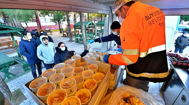 İzmir Büyükşehir Belediye Başkanı Tunç Soyer’in zorlu ekonomik süreçte üniversiteli gençlerin bütçesine destek olmak için başlattığı sıcak yemek desteği artık 6 noktada sunulacak. Ege Üniversitesi Kampüsü, Dokuz Eylül Üniversitesi Kampüsü, İ.Y.T.E Kampüsü, Kâtip Çelebi Üniversitesi Kampüsü için dün başlayan sıcak yemek hizmetine öğrencilerin talebiyle İzmir Demokrasi Üniversitesi ve Bakırçay Üniversitesi kampüsleri de eklendi. Sosyal Hizmetler Dairesi Başkanlığı tarafından sağlanan toplam 5 bin kişilik sıcak yemek hizmetinden öğrenciler 17.00 ile 19.00 saatleri arasında faydalanabiliyor.