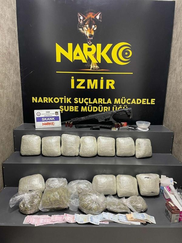 İzmir'in Çiğli ilçesinde uyuşturucu satıcılarına yönelik düzenlenen operasyonda, 8 kilo 870 gramı esrar olmak üzere farklı tür ve miktarlarda uyuşturucu ele geçirildi. Gözaltına alınan 8 şüpheliden 4'ü tutuklandı.