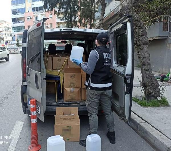Kaçakçılık Suçlarıyla Mücadele Şube Müdürlüğü ekipleri, istihbarat çalışmasıyla Bornova ilçesinde sahte etil alkol üretilip, piyasaya sürüleceği bilgisine ulaştı. Harekete geçen ekipler, belirledikleri bir iş yeri ile alkol dağıtımı yapan 5 araca operasyon düzenledi. İş yerinde ve araçlarda yapılan aramalarda toplam 9 bin 120 litre sahte etil alkol ele geçirildi. Operasyon kapsamında 7 kişiyi gözaltına aldı. Şüphelilerden 3'ü polisteki işlemlerinin ardından salıverildi. Adliyeye sevk edilen diğer 4 şüpheliden O.T., M.A.T., A.T. tutuklanırken., E.A. ise adli kontrol şartıyla serbest bırakıldı. (DHA)