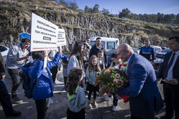 Bu topraklardan bugünkü nesillere sadece kutuplaşma, eşitsizlik ve adaletsizlik kalmasının asla kabul edilemez olduğunu söyleyen Başkan Soyer, "Biliyoruz ki bir arada olduğumuz müddetçe aşamayacağımız engel yok. Bu nedenle ulaşımda, geri dönüşümde, tarımda, kentsel dönüşümde, Halk Konut projesinde uyguladığımız kooperatifçilik modelini Ege Şehir Toplu Konut Projemize de taşıdık. Kooperatifçiliği yaşamımıza yeniden dahil ederek çok zor koşullara rağmen şehrimizin refahını büyütüyor ve adil paylaşımını sağlıyoruz. Göreceksiniz, bu ülkede yaşayan herkesin başı dik gezdiği bir geleceği hep birlikte kuracağız. Bir mucizeyi gerçekleştiriyoruz. Buraya gelirken böyle çok tatlı, hepsi birbirinden şeker çocuklarımız karşıladılar beni. Çiçekler verdiler. Onların kafalarını okşadım, sevdim ve şunu aklından geçirdim. 2.5 sene sonra burada anahtarların teslimini yapacağız. Ve ondan sonra o çocuklar gençliklerini burada yaşayacaklar. Bu toplu konut tesislerimize bağlanan Yaşayan Park'ta doğayla buluşarak gençliklerini yaşayacaklar" diye konuştu.