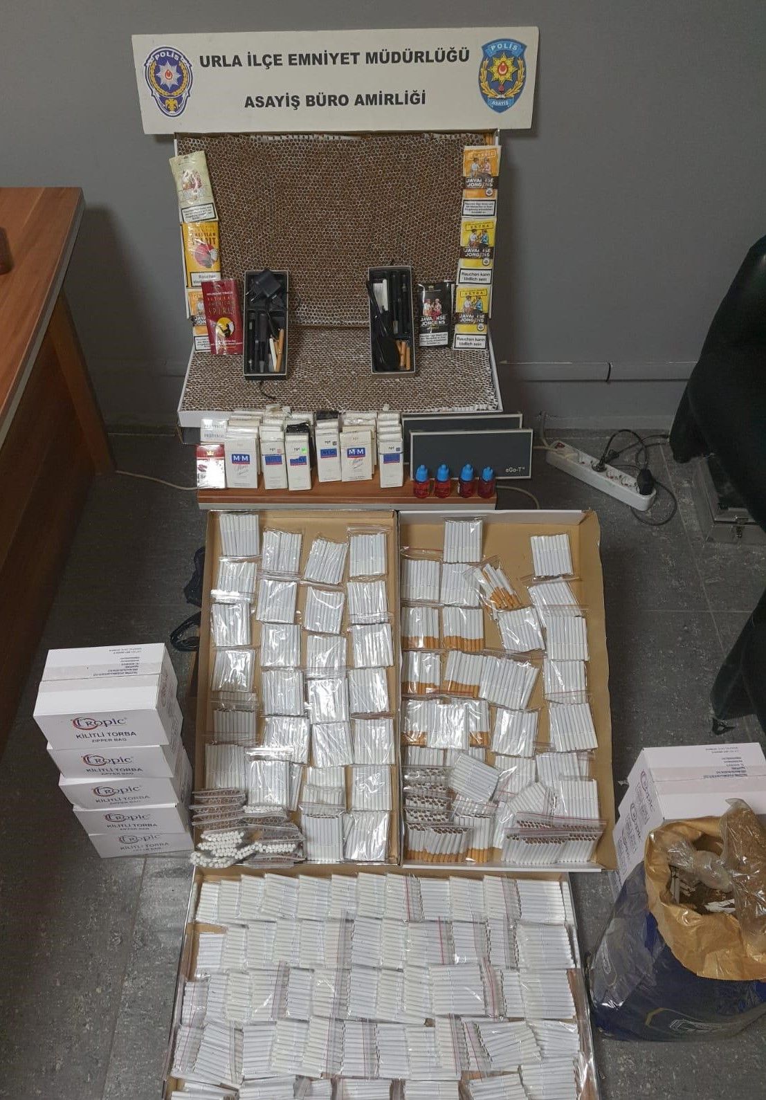Olay, dün saat 21.00 sıralarında Güvenlik Mahallesi'nde meydana geldi. Kaçakçılık ile mücadele kapsamında çalışmalarına hız kesmeden devam eden Urla İlçe Emniyet Müdürlüğü Asayiş Büro Amirliği ekipleri, bir evde kaçak sigara alışverişi yapıldığını tespit etti. Bunun üzerine eve operasyon düzenleyen ekipler; 13 bin 500 filtreli sigara, 9 bin şeffaf paket, 2,5 kg açık tütün, 8 pipo tütünü, 4 elektronik sigara likiti ve 2 elektronik sigara ve şarj cihazı ele geçirdi. Olayla ilgili şüpheli M.E. (48) ekipler tarafından gözaltına alındı.
