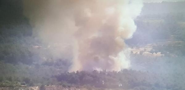 İZMİR'in Buca ilçesinde, ormanda yangın çıktı. Alevlere karadan ve havadan müdahale ediliyor.
