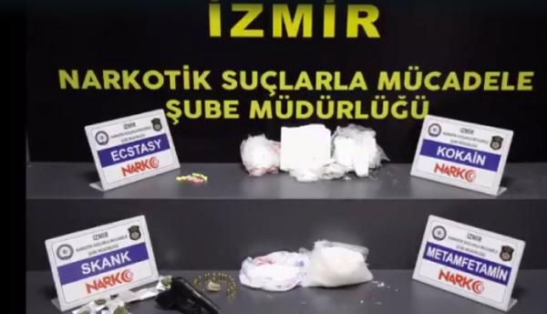 İzmir polisi 24 Nisan-01 Mayıs tarihleri arasında uyuşturucu madde ticareti yapan şüphelilere yönelik çalışma başlattı. Operasyonlarda 52 şüpheli gözaltına alındı. Adreslerde yapılan aramalarda 2 kilo 859 gram esrar- skunk maddesi, 3 kilo 16 gram bonzai, 3 kilo 408 gram metamfetamin, 1 kilo 505 gram kokain, 1043 ecstasy, 229 captagon, 1188 sentetik ecza, 3 hassas terazi, 8 tabanca, 2 tüfek, 7 şarjör ile 77 fişek ele geçirildi. Emniyetteki işlemlerinin ardından adliyeye sevk edilen şüphelilerden 38'i tutuklanırken 9 kişi ise adli kontrol şartıyla serbest bırakıldı.(DHA)