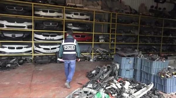 İzmir Emniyet Müdürlüğü Asayiş Şube Müdürlüğü Oto Hırsızlığı Büro Amirliği ekipleri, çalıntı, ağır hasar kayıtlı, gümrük kaçağı, arama veya yakalama kaydı bulunan araçların şaşi numaralarını benzer başka araçlarla değiştirip, satarak haksız kazanç sağlayan 7 şüpheliyi tespit etti. Ekipler, 11 Mart'ta 6 ev, 9 iş yeri ve 1 depoda eş zamanlı operasyon düzenledi. Baskınlarda, 18 ilde 'change' şüphesi olan 25 otomobil ve 6 araca ait parçalanmış şasi, 25 motor bloku, 2 hacizli/yakalamalı olarak aranan parçalanmış otomobil, şüpheli araç alım satım işlemlerinin kayıtlarının tutulduğu değerlendirilen ajanda ve dokümanlar ile tescil belgesi ve çift plaka ele geçirildi. Operasyonda 6 şüpheli gözaltına alındı, diğer 1 şüphelinin de daha önce yakalanıp, tutuklandığı belirtildi. (DHA)