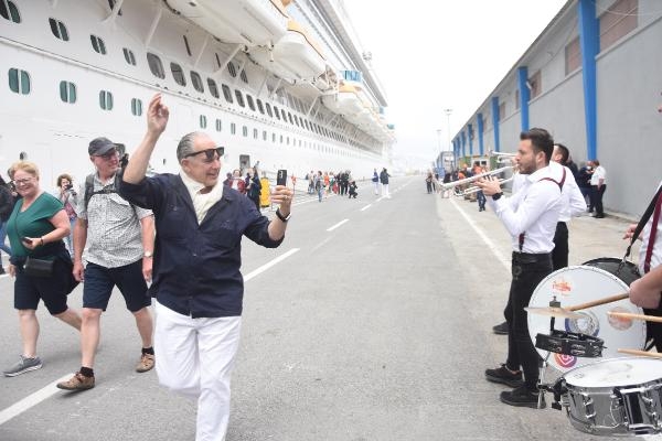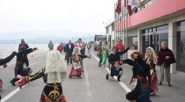 İZMİR'e, 6 yıl sonra gelen ikinci kruvaziyer gemisi 'Costa Venezia'daki 1200 turist, Kerimoğlu Zeybeği ile karşılandı.