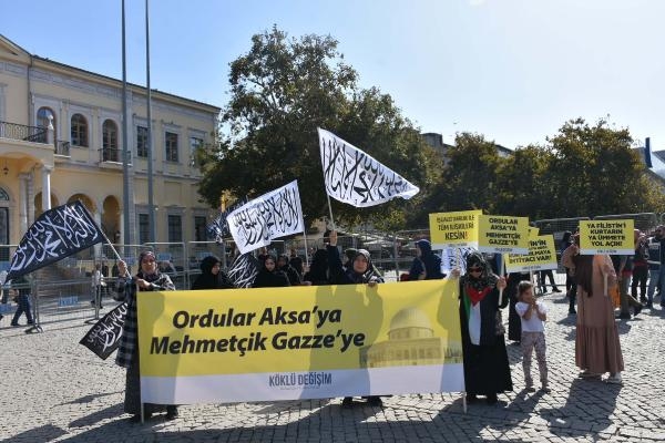 İzmir'de birçok vatandaş, cuma namazı için Konak Atatürk Meydanı'ndaki Konak Camisi'nde toplandı. Polis meydana gidişlerde geniş güvenlik önlemi aldı. Meydana gelenler, üzerleri aranarak alana alındı. Bazı vatandaşla, İsrail'e tepki göstermek için 'Ordu Aksa'ya Mehmetçik Gazze'ye' ve 'Ya Filistin'i kurtarın ya ümmete yol açın' yazılı pankart taşıdı. Ayrıca 'Filistin'e yol açın yola çıkmaya hazırız', 'Filistin'in arabulucu değil, kurtarılma ihtiyacı var' ve 'İşgalci varlık ile tüm ilişkinizi kesin' yazılı dövizler taşındı. Hutbenin ardından cuma namazı kılındı. Daha sonra toplanan kişiler adına basın açıklamasını yapan Murat Özdemir, Türk ordusunun Gazze'ye gitmesi çağrısı yaptı. Tekbirlerin atıldığı basın açıklamasında Özdemir, "Tek hakikat; ordulara karşı ordularla karşılık vermektir. Mazlumların yardımına koşmaktır" dedi. Konuşma, sıklıkla "Ordular Aksa'ya" sloganlarıyla kesildi. Basın açıklamasının ardından ölenler için dualar edildi. Grup, sonrasında sessizce dağıldı.