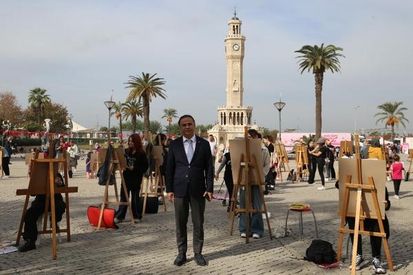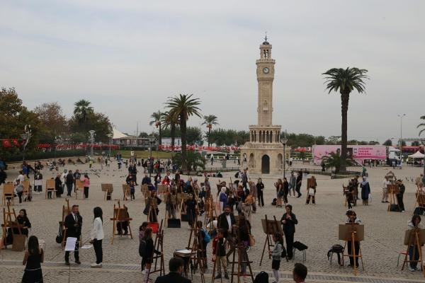İZMİR İl Milli Eğitim Müdürlüğü'nün 'Cumhuriyetin 100. Yılında 100 Etkinlik' programı kapsamında 100 öğrencinin katılımıyla canlı resim performansı gerçekleştirildi. Konak Meydanı'ndaki etkinlikte renkli görüntüler oluştu.