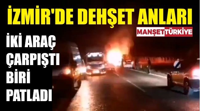 İzmir'de dehşet! Çarpışan araç yanıyor
