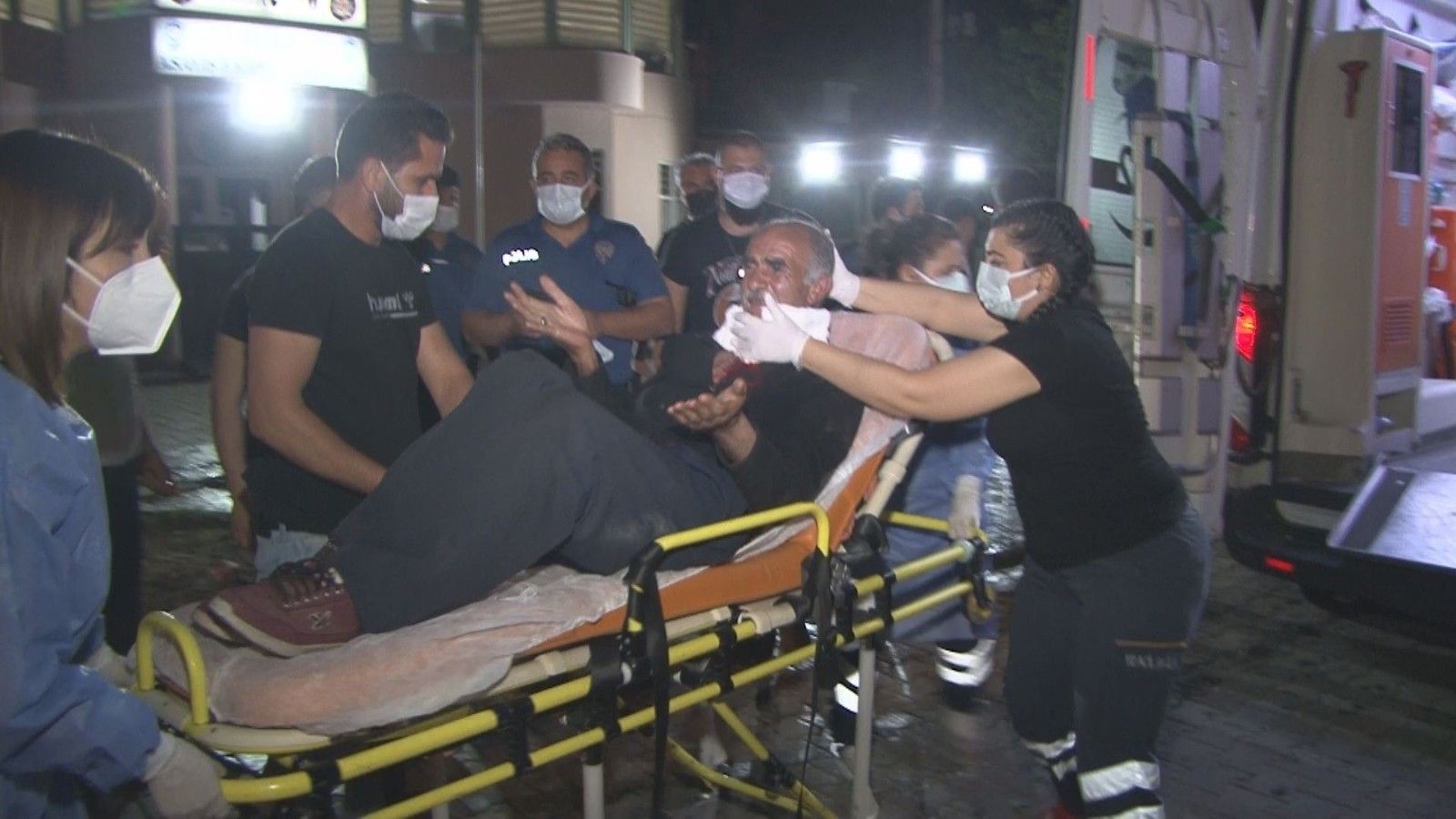 Çok kan kaybettiği ve yoğun şekilde kanaması devam eden yaralıya ilk müdahale olay yerinde polis ekiplerinden geldi. Peçete ile derin kesinin bulunduğu noktaya tampon yapılırken, durum 112 Acil Servis ekiplerine bildirildi. İhbar üzerine gelen sağlık ekiplerince İzmir Sağlık Bilimleri Üniversitesi (SBÜ) Tepecik Eğitim ve Araştırma Hastanesi'ne kaldırılan Ahmet A. tedavi altına alındı.