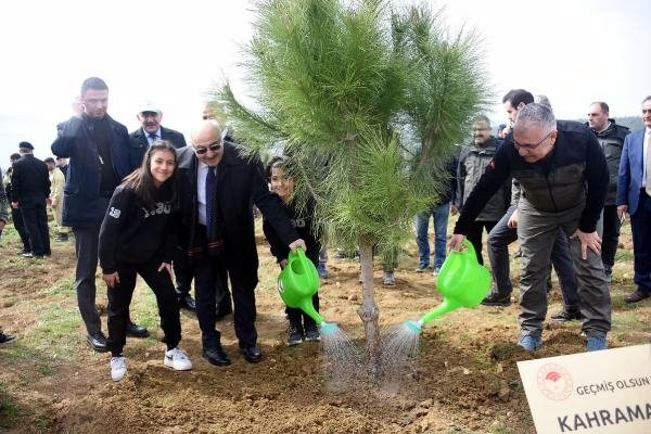İzmir'de deprem şehitleri için 4 bin fidan diktiler