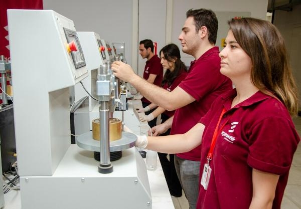 Ercüment Aysert, "Zemin dayanımını ölçmek için tek eksenli cihazda basınç uygulayarak sondaj yaparak aldığımız karot numunelerinin hangi seviyelerde kırılacağını test ediyoruz. Yaptığımız deney sonucunda da o zeminde nasıl bir bina yapılması, kaç katlı yapılması, depreme dayanıklı olarak inşa edilmesi gerektiği sonucunu çıkarıyoruz. Zemin sınıfında aldığımız örneğin kil numuneleri ile farklı bir test uyguluyoruz. Bunda da zemindeki sıvılaşma riskini, sıvılaşmanın seviyesini belirliyoruz. Binalar yapılırken dikkat edilmesi gereken bütün testleri burada yapabiliyoruz" dedi.