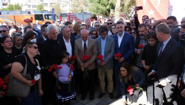 İzmir Büyükşehir Belediye Başkanı Tunç Soyer de depremde ölenlere rahmet dileyerek "Ne yazık ki; her depremde tekrar tekrar bu acıları yaşamak zorunda kalıyoruz. Bu kabul edilebilir değil. Bu şehri dirençli hale getirmek mecburiyetindeyiz ki; bizden sonrakiler de aynı acıları yaşamasınlar. O yüzden bilimsel çalışmalar yapıyoruz. 33 bin 100 binanın deprem karnesini çıkardık, projeye devam ediyoruz. Türkiye tarihinde görülmüş en büyük jeolojik çalışmayı yürütüyoruz, yer altının fotoğrafını çıkarıyoruz. Depremden önce deprem dairesini kurmuş bir belediyeyiz. Depremden 30 gün sonra çadırda yaşayan hiçbir vatandaşımızı bırakmadık. Herkesin başını sokabileceği bir yer bulabilmiştik. Bunlar dayanışmayla mümkün. Bu coğrafyada beraber yaşıyoruz, bu coğrafyada imkanları ve imkansızlıkları beraber paylaşıyoruz. Birbirimize kol kanat germek zorundayız. O nedenle dayanışmanın ve umudun korunması gerekiyor. Halk Konut ile umudu büyüten bir model üzerinde yol alıyoruz" dedi.