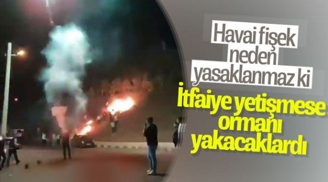 İzmir'de düğünde ormana doğru havai fişek atıldı