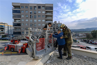Karabağlar’daki Engelli Hizmet Merkezi’nde düzenlenen tatbikatta, deprem ve yangın senaryoları ile engelli bireylerin güvenli tahliyesi test edildi.