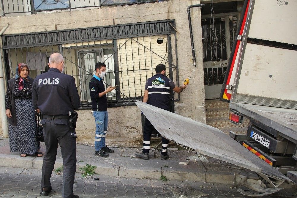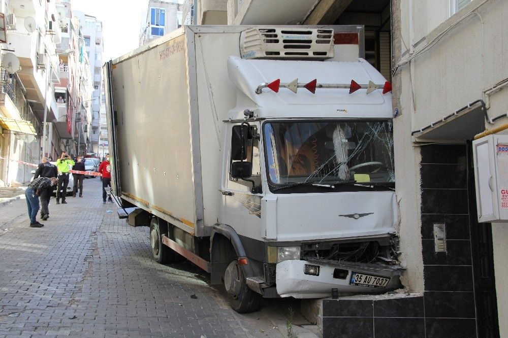 İzmir'in Konak ilçesinde, bir süpermarkete mal indirmek için sürücüsünün yokuşta bıraktığı kamyon, iddiaya göre freni boşalmasının ardından yokuş aşağı giderek doğalgaz borusuna ve bir binaya çarparak durabildi. Kazanın ardından çevreye gaz kokusu yayılırken, ekiplerin müdahalesiyle büyük bir facianın eşiğinden dönüldü.