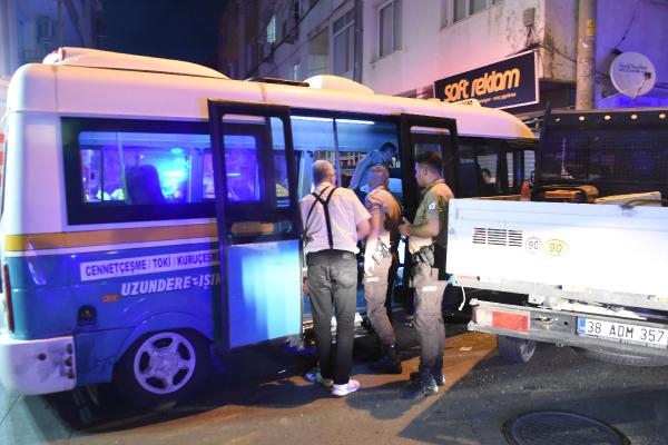 Kaza, saat 21.30 sıralarında Çamlıkule Mahallesi 290/5 sokakta meydana geldi. Ana yola çıkmak isteyen, Barış S. (24) yönetimindeki 38 ADM 357 plakalı kamyonet, Mustafa Ö. yönetimindeki 35 M 9139 plakalı yolcu minibüsü ile çarpıştı. Çarpışmanın etkisi ile her iki araç da sokak aydınlatma direğine çarptı. Kazayı gören çevredeki vatandaşların ihbarı ile olay yerine polis, sağlık ve itfaiye ekipleri sevk edildi. Kaza nedeniyle sokaktaki trafik dururken, sağlık ekipleri ise çevredeki vatandaşların yardımıyla araçlardan dışarı çıkan yaralılara ilk müdahalesini olay yerinde gerçekleştirdi. Yaralı olduğu belirlenen 12 kişi, ambulanslarla çevredeki çeşitli hastanelere kaldırılarak tedaviye alındı. Polisin ön soruşturmasında yolcu minibüsü şoförü Mustafa Ö.'nün 'basit yaralama' suçundan hakkında arama kararı olduğu, kamyonet sürücüsü Barış S.'nin ise kaza anında 0.98 promil alkollü olduğu öğrenildi. (DHA)