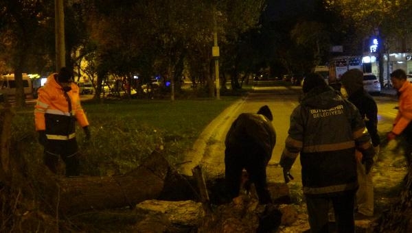 Kentte dün gün boyu etkili olan rüzgar, gece saatlerinde şiddetini arttırdı. Kuvvetli rüzgar nedeniyle kent genelinde çok sayıda ağaç devrildi. Bornova'da Mustafa Kemal Caddesi'ndeki refüjde bulunan 6 ağaç da kuvvetli rüzgarda kökünden söküldü. İhbar üzerine olay yerine belediye ve polis ekipleri sevk edildi. Yolu trafiğe kapatan ekipler, ağaçları keserek kaldırıldı. Çalışmalar sonrası yol trafiğe açıldı.