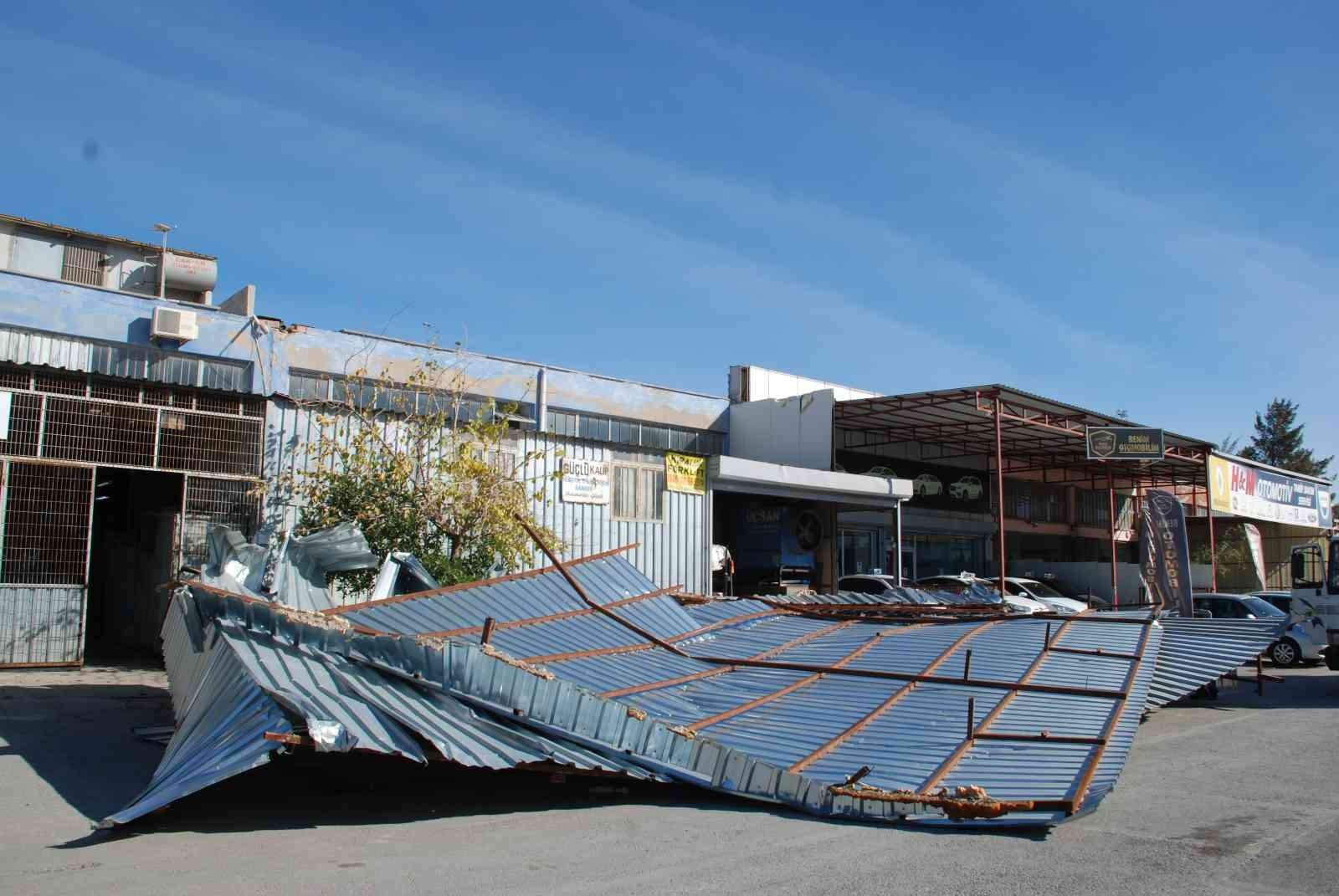 İzmir'de dün gece saatlerinde başlayan fırtına, sabah saat 05.00 sıralarında Bornova ilçesindeki 4. sanayi sitesinde bir işletmenin alüminyum çatısını uçurdu. Çatı, fırtınanın etkisiyle arka sokaktaki başka bir işletmenin önüne düştü. O anlar, güvenlik kamerasına da yansıdı. Çatısı uçan işletmenin sahibi Akın Kır, "Sert fırtınadan dolayı, atölyemizin üzerinde korunak olarak koyduğumuz çatı, arka sokağa uçmuş. Çok şükür ki can kaybı ve mal hasarı yok. Sadece bizim bir maddi hasarımız var. O da önemli değil. Şükrediyoruz" dedi.