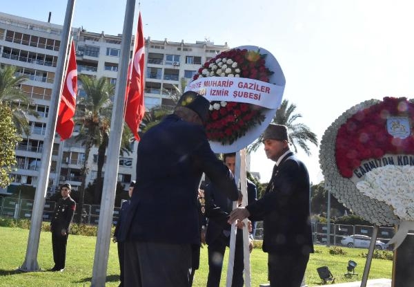 Gaziler Günü nedeniyle Cumhuriyet Meydanı'nda tören düzenlendi. Törende, İzmir Valisi Süleyman Elban, Ege Ordusu ve Garnizon Komutanı Orgeneral Kemal Yeni, İzmir Büyükşehir Belediye Başkan Vekili Mustafa Özuslu ile Türkiye Muharip Gaziler Derneği İzmir Şubesi, Türkiye Harp Malulü Gaziler, Şehit Dul ve Yetimler Derneği İzmir Şubesi, Tüm Emniyet Teşkilatı Mensupları Vazife Malülleri ve Şehit Aileleri Sosyal Yardımlaşma ve Dayanışma Derneği, Şehit Aileleri ve Gaziler Derneği temsilcileri Atatürk Anıtı'na çelenk sundu.