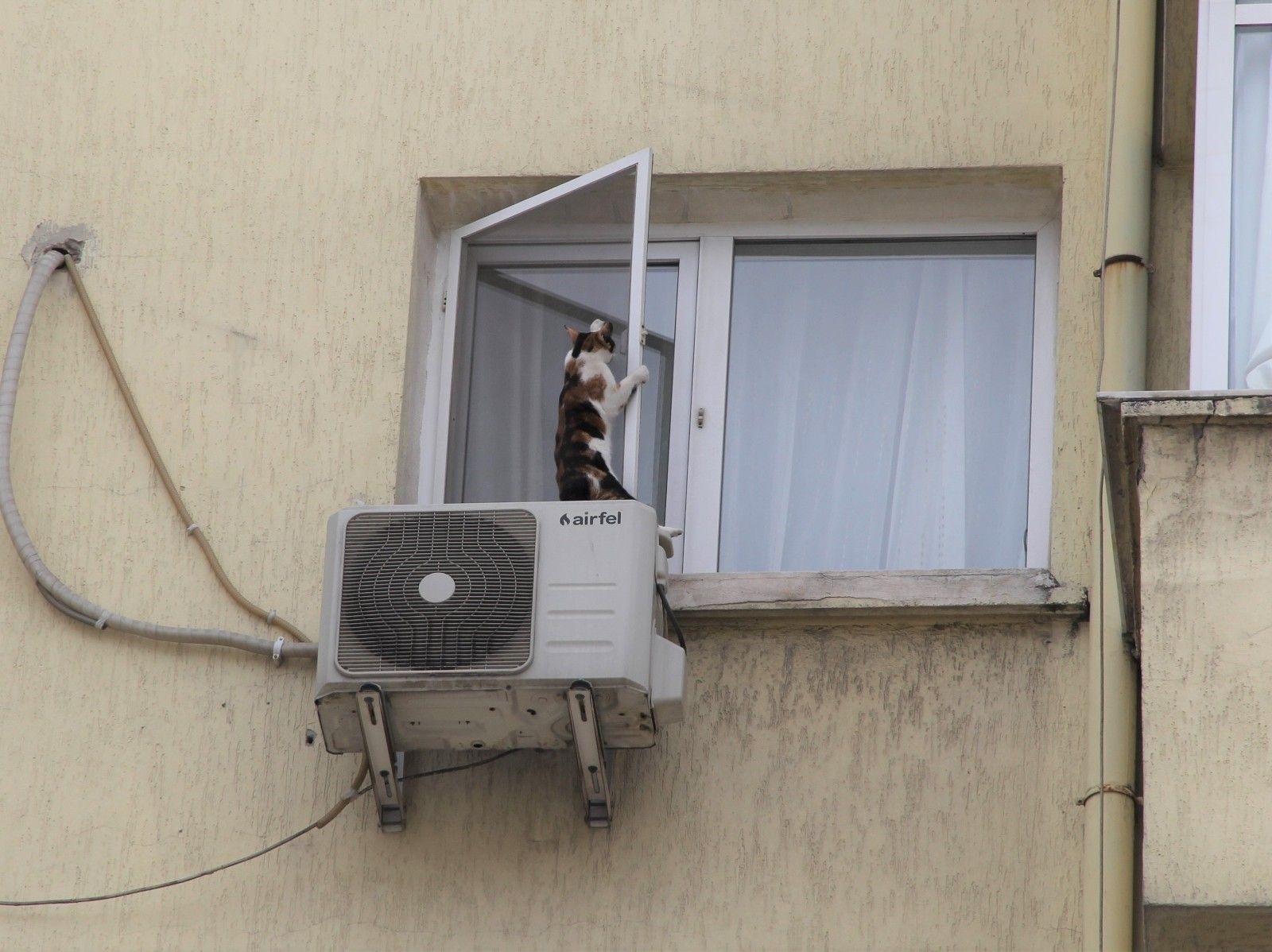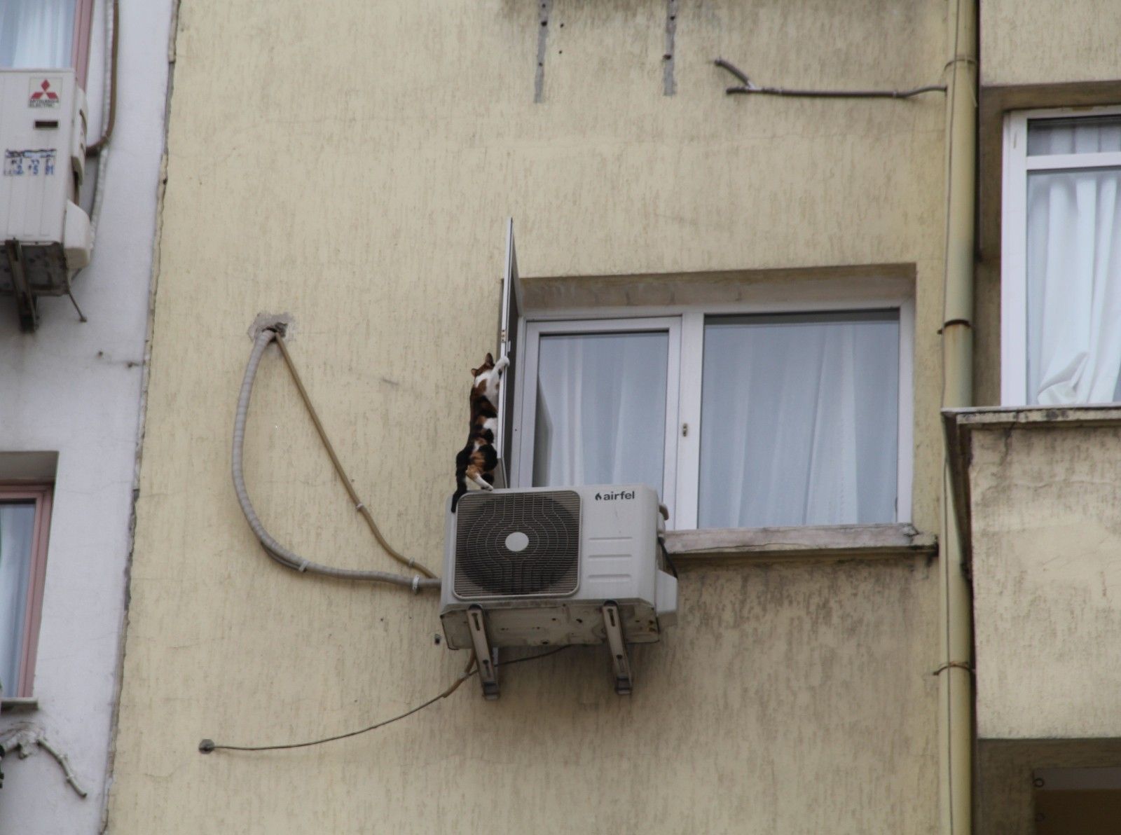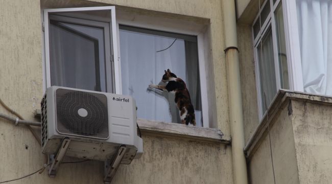 İzmir'de bir apartmanın 5. katındaki penceresinde mahsur kalan görme engelli kedi, itfaiye ekiplerinin ve sahibinin çabasıyla kurtarıldı. Talihsiz kedi, bir ara pencerenin sinekliğinde asılı kalarak düşme tehlikesi geçirdi. Kedinin kurtarılma anları saniye saniye görüntülendi.