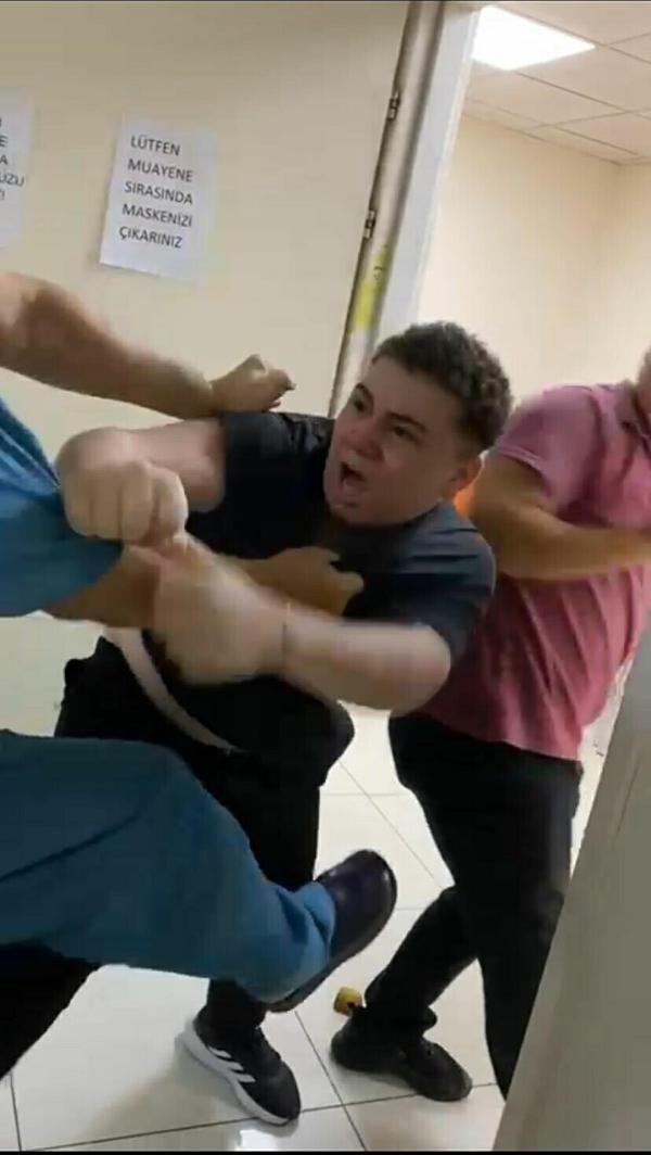 Olay dün saat 10.40 sıralarında Gaziemir'de bulunan özel bir tıp merkezinde meydana geldi. A.C., annesi ve kardeşiyle birlikte gemi adamı raporu için göz doktoru Cüneyt İzzettinoğlu'na tedavi oldu. İzzettinoğlu, yaptığı muayenin ardından A.C.'nin göz sağlığının gemi adamı belgesi için yeterli düzeyde olmadığını söyledi. İddiaya göre taraflar arasında bu nedenle çıkan tartışma, kavgaya dönüştü. A.C. ve kardeşi doktor İzettinoğlu'na saldırdı. İzzettinoğlu da kendini korumak için karşılık verdi. O anlar İzzettinoğlu'nun sekreteri tarafından cep telefonuyla kaydedildi. Görüntülerde İzzettinoğlu'nun "Sizi dışarı alalım" dedikten sonra bir şüpheli tarafından saldırıya uğradığı ve buna karşılık verdikten sonra iki şüpheli tarafından darbedildiği görüldü. Doktor İzzetinoğlu, 'beyaz kod' verirken, sağlık raporu alıp şikayetçi oldu.