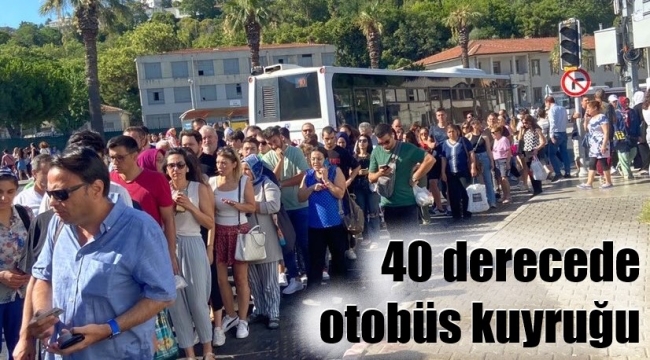 İzmir'de güneş altında otobüs kuyrukları oluştu